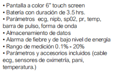 MONITOR SIGNOS VITALES 7” Marca XIGNAL Modelo M7T